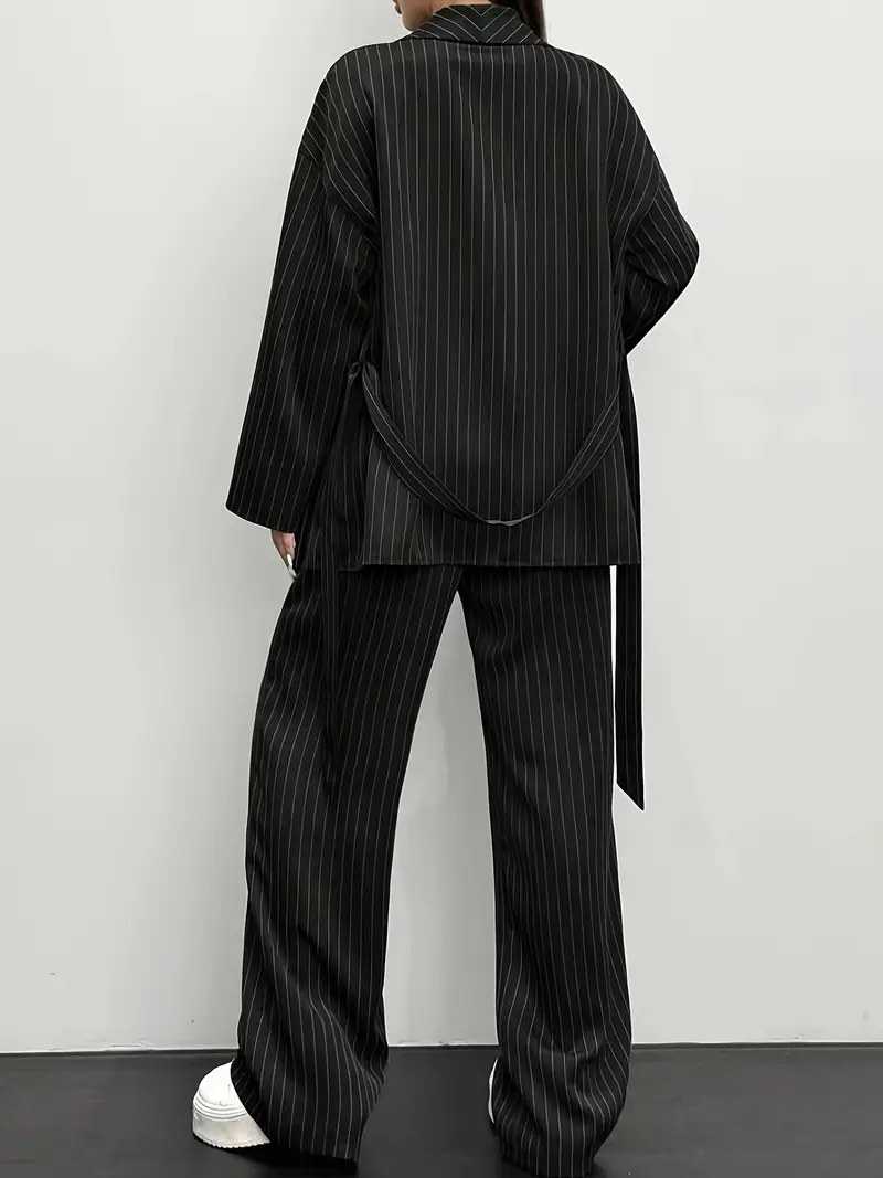 Redefine everyday sophistication with the Chiplar Striped Two-Piece Set, a stunning blend of confidence and class. This black-and-white vertical striped blazer paired with wide-leg tailored pants creates a look that’s both powerful and polished — perfect for the modern woman on the move.